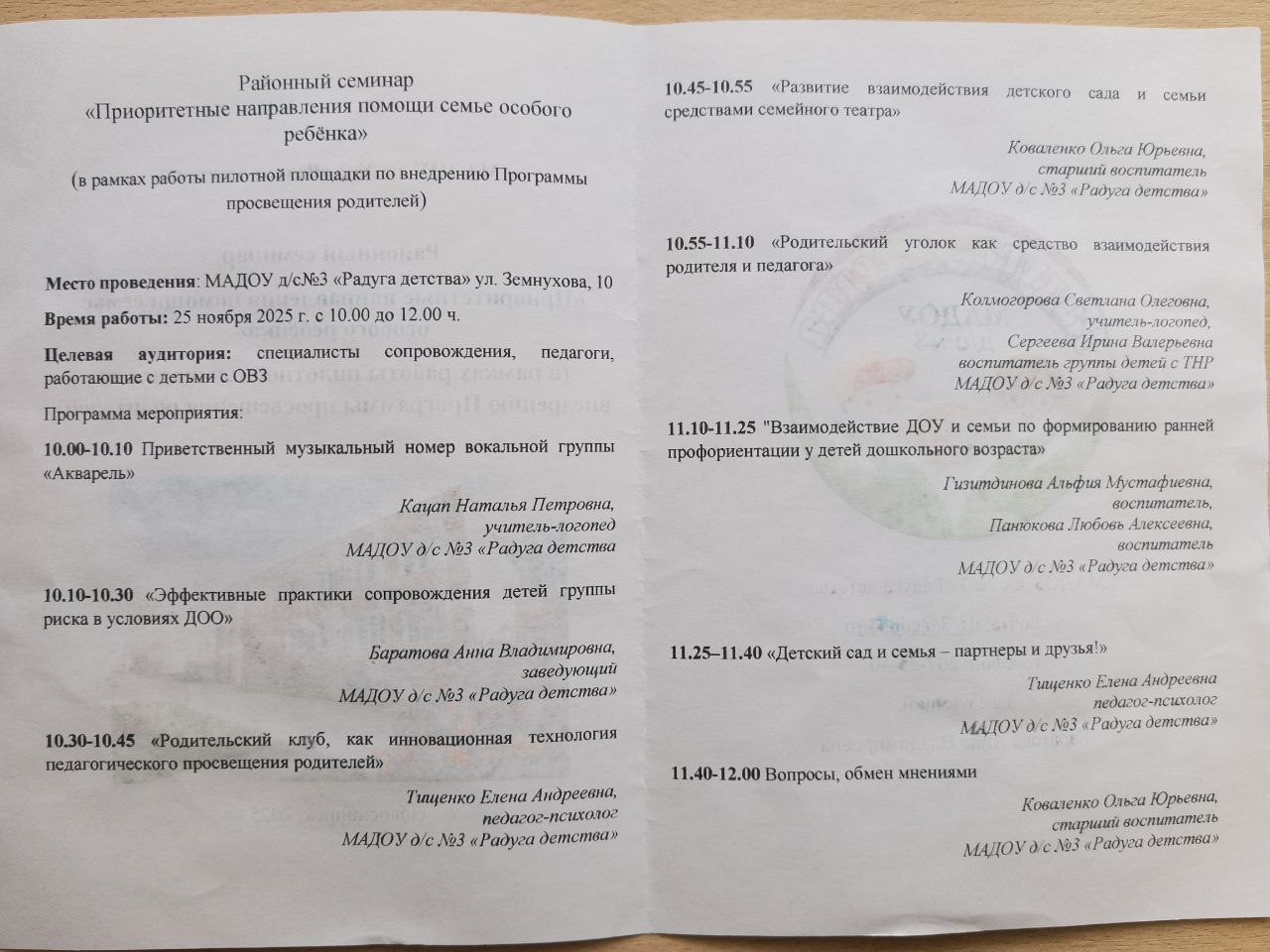 Районный семинар "Приоритетные направление помощи семье особого ребёнка" 25.11.2025.
